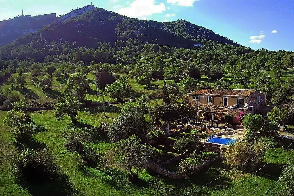Am Fuße des Bergs San Salvador liegt diese wunderschöne alte Finca inmitten eines Naturschutzparks, voll mit Brotbäumen, Mandeln, Zypressen und Oliven. Man genießt den Blick auf den Berg und das Kloster oder schaut von der vorderen Terrasse aus aufs Meer Richtung Porto Colom.